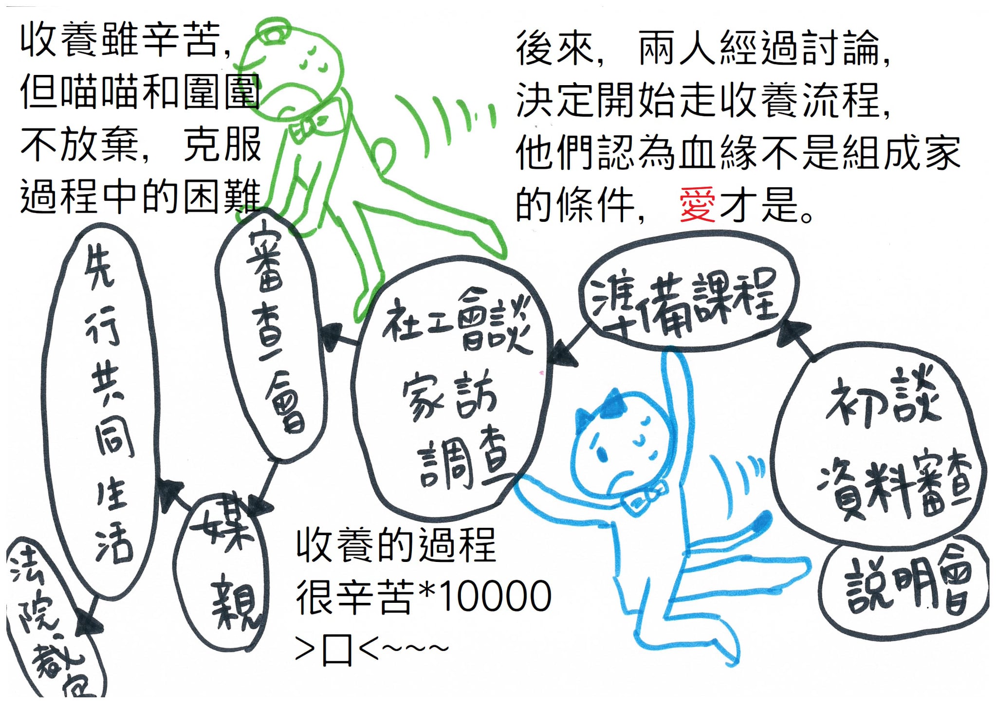 真正啟動收養流程前,兩人花了兩年進行心理諮商。我們不只要面對社會上對同志家長的偏見,更要面對內心的恐懼與自我懷疑:「我們可以當爸爸嗎?」「如果孩子問起生母怎麼辦?」「我們有能力照顧她一輩子嗎?」這些焦慮與壓力,在心理劇、同儕支持與伴侶對話中一一被梳理。我們逐步學會放下對「完美父母」的追求,努力成為「夠好的爸爸」。在行政程序方面,收養的評估流程極為繁瑣:包括多次個別與共同訪談、家訪、收養課程、評估文件準備、媒親審查與法院程序等,每一關都像是對同志伴侶的挑戰與試煉。但我們沒有放棄,因為知道彼此想要的不是一時的可愛寶寶,而是一個能夠永遠互相依靠的家庭。