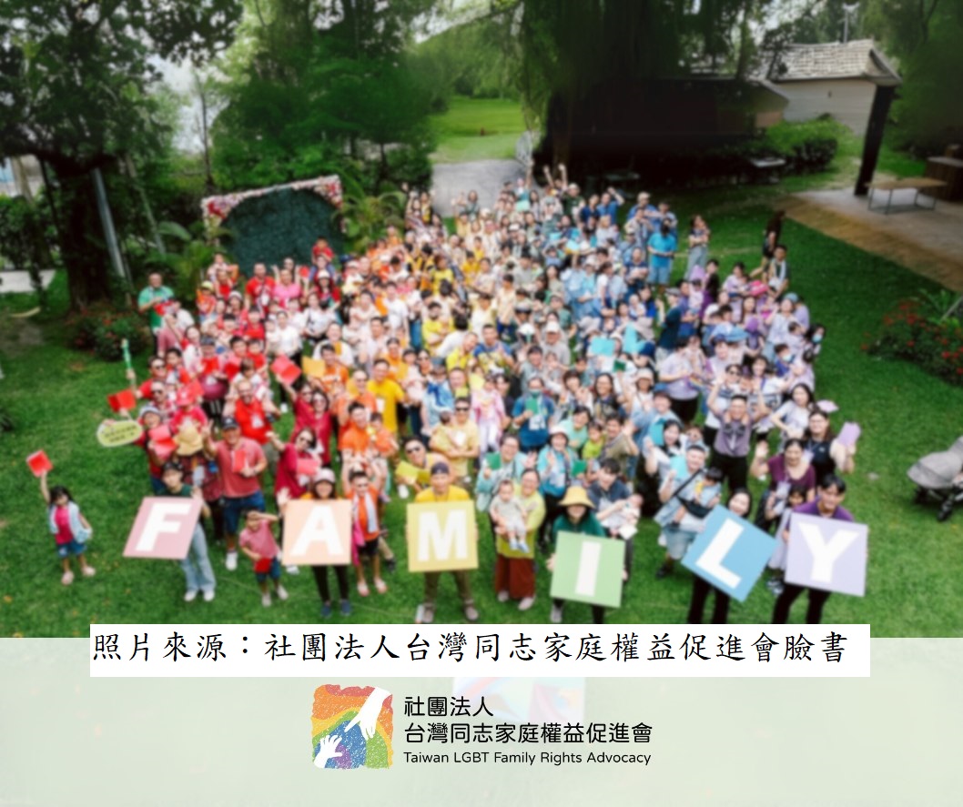 台灣同志家庭權益促進會自 2005 年成立,於 2011 年正式立案,為臺灣第一個關注同志家庭權益的立案組織。根據其服務同志家庭經驗中,同志家庭因生育子女的方式不同,大致分成三種同志家庭的樣貌: