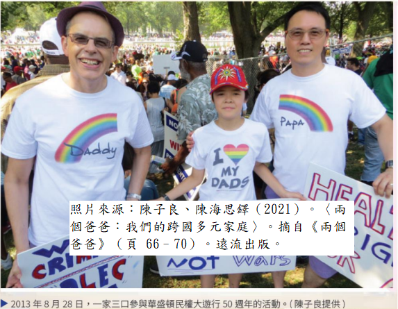二、同志家庭的組成大體可分為三種:重組家庭、人工生殖家庭、無血緣收養家庭
