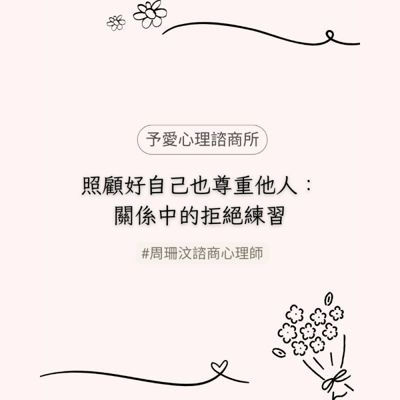「我需要拒絕他。」當你想到這句話,直覺浮現的通常是什麼樣的擔心呢? 怕被失望(他都開口了,我現在拒絕好像不通人情。)