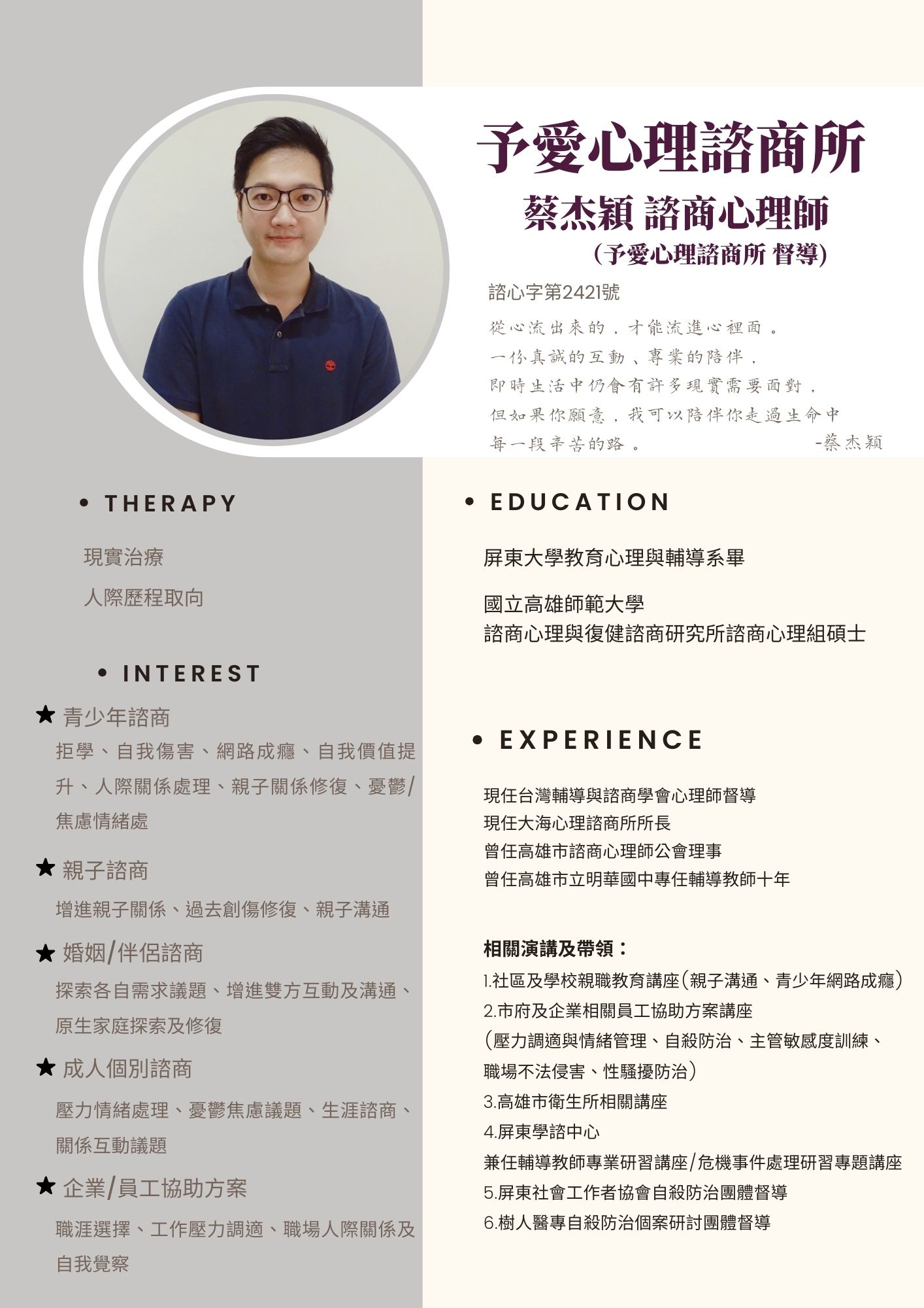 蔡杰穎 諮商心理師